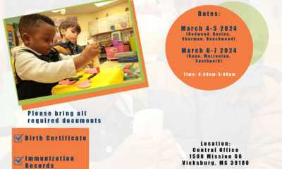 Vicksburg Warren School District is reminding parents that today is the last day to register your child for pre-kindergarten. You can register at Central Office on...