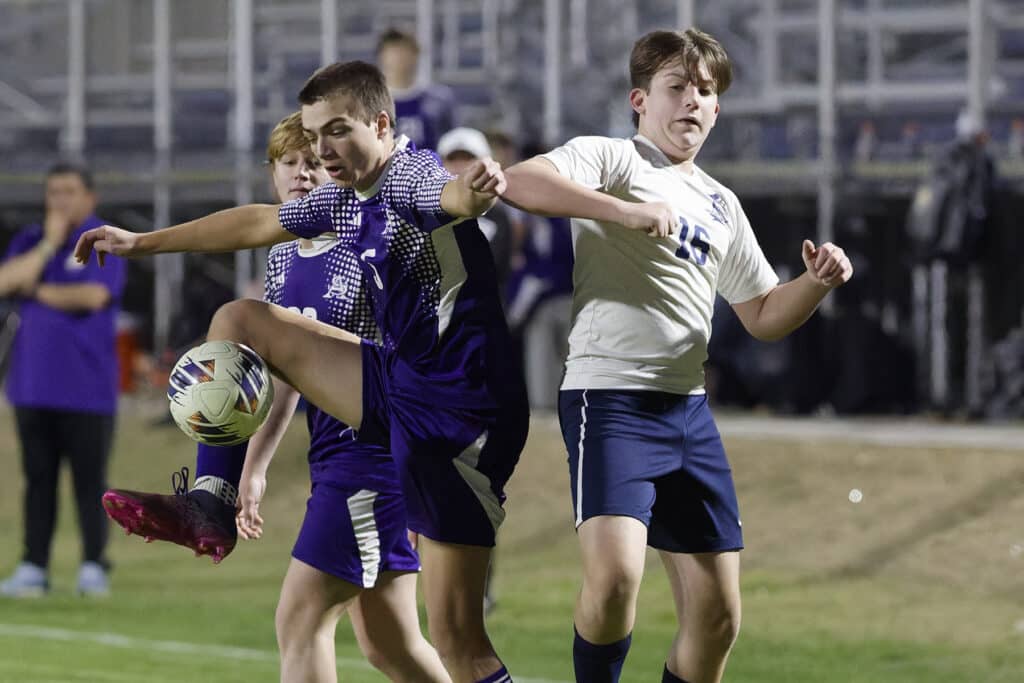St. Aloysius wasted little time getting on the scoreboard. Cole Butler scored just 50 seconds into the match, followed quickly by a goal from Davis Burroughs within the first two minutes. Henry Bell added a free-kick goal 12 minutes into the game, and Carter Smithhart found the net a minute later to extend the early lead.