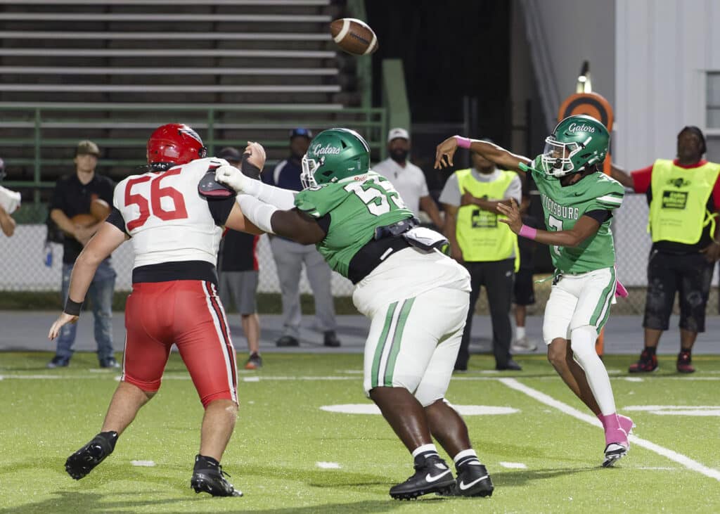 Vicksburg responded after a botched punt snap gave the Gators the ball on the 1-yard line as Elijah Rainey recovered it. Henderson punched it in to tie the game at 7-7 after Abel Gonzalez’s extra point.