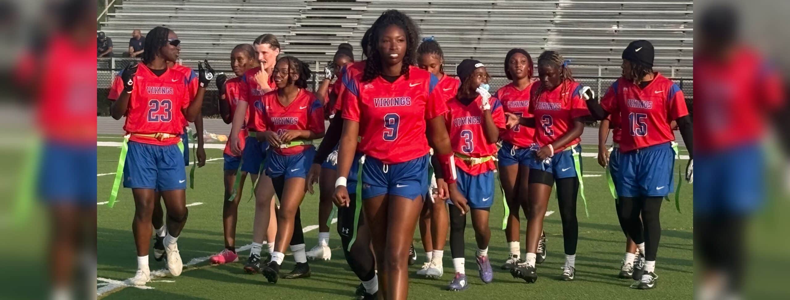 Late in the second half, Henderson connected with Madison Ward on a 25-yard touchdown pass to give the Lady Vikes a 6-0 lead. Shortly after, Camara Evans returned an interception 40 yards for a touchdown to extend the lead to 12-0.