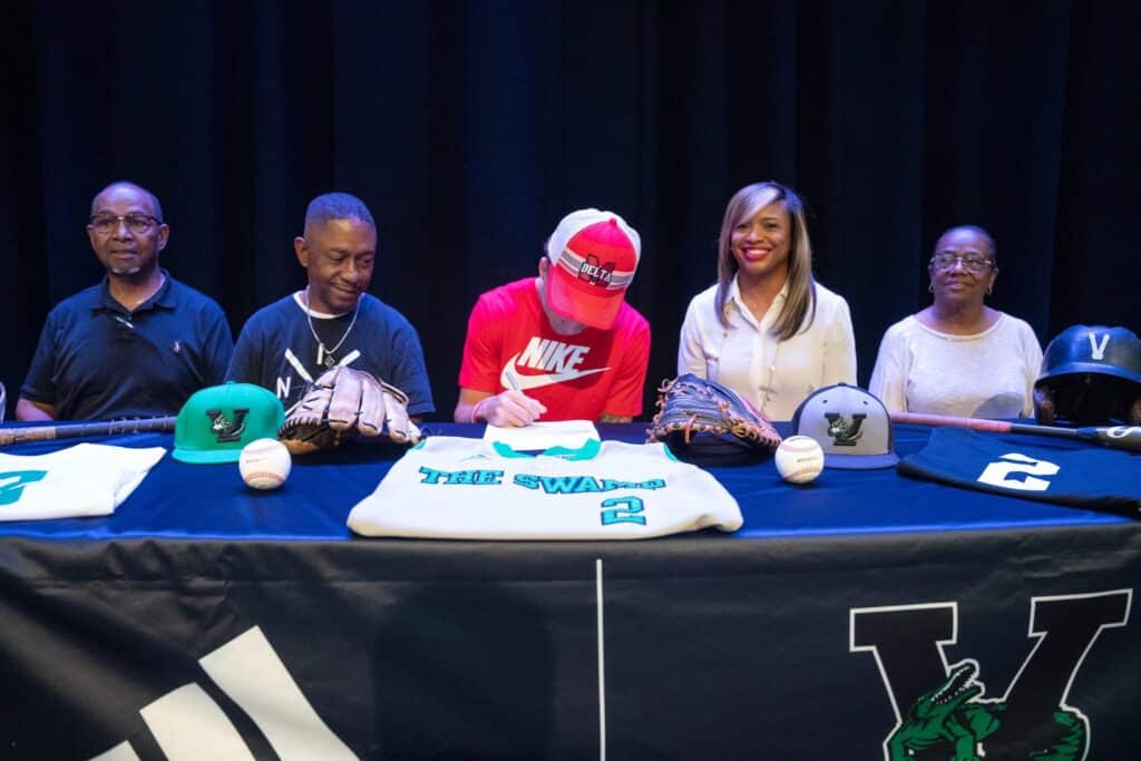 VICKSBURG, Miss.(VDN)—Vicksburg High School senior Mincer Minor IV celebrated a major milestone Wednesday by signing his official baseball scholarship. Minor will continue both his academic and athletic career at Mississippi Delta Community College.