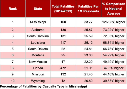 The ranking, based on data from 2014 to 2023, found that Mississippi tops the list.