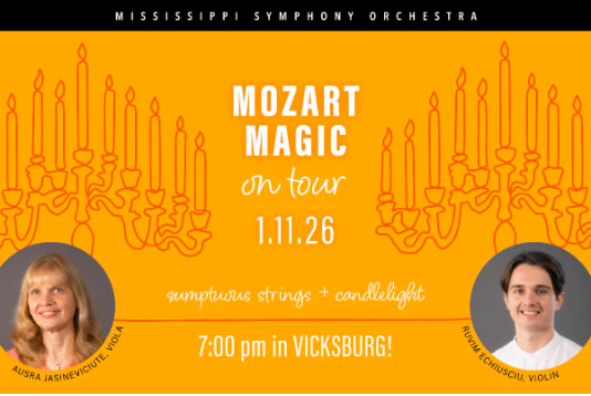 Bring a friend, bring your family, and experience the elegance, serenity, and inspiration of live symphonic music in one of Vicksburg’s most beautiful historic spaces. This is a concert you won’t want to miss.