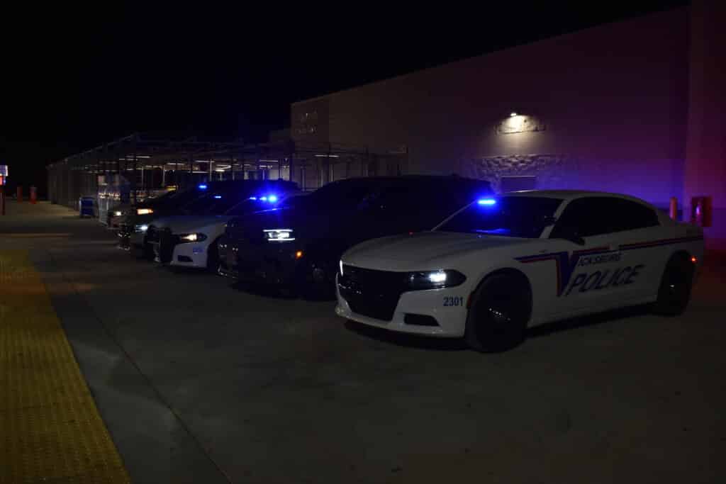 The children and their families were shuttled on a Vicksburg tourism bus from United Way to Walmart where they were met with a “sea” of blue lights. VPD lined the side walk in front of Walmart with their police cruisers and kept the blue lights flashing in a light show for the kids.