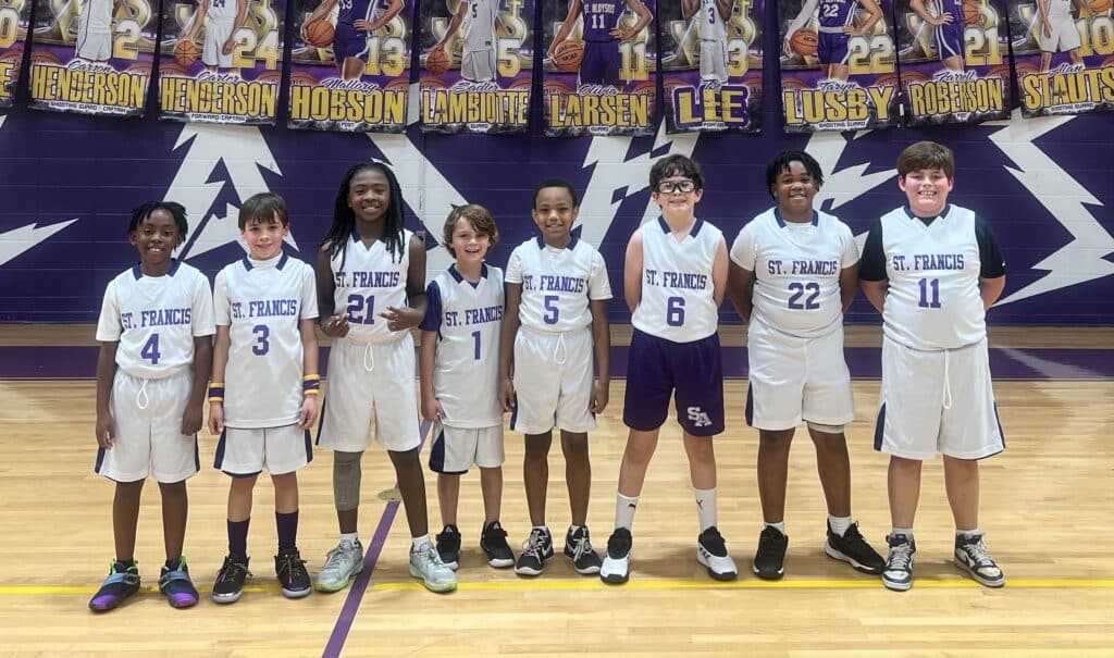 The Saint Francis sixth-grade boys team also stayed undefeated with two wins on Jan. 10. Saint Francis edged Briarfield Academy 23-21 as Clayton Carr scored a team-high 10 points. Everett Saddler added five points, Leyton Lambiotte finished with four, and Reid Ellis and Tyler Wade scored two points each.