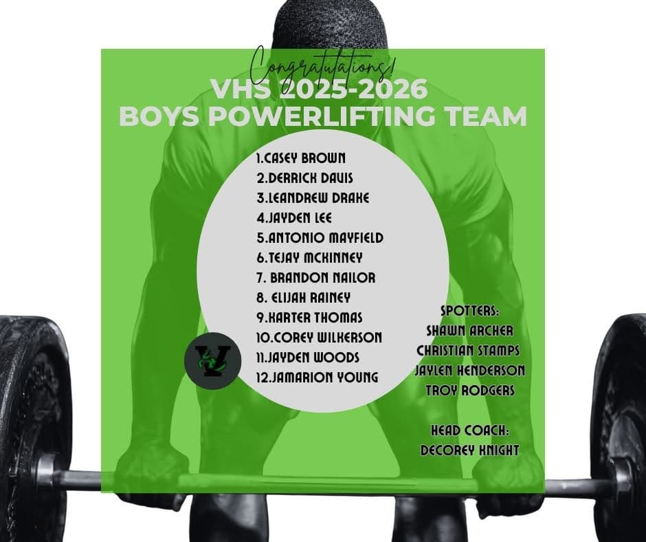 VHS announces roster for upcoming powerlifting season
