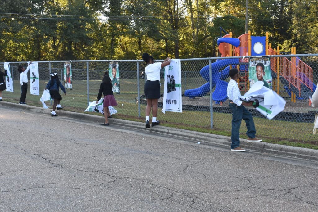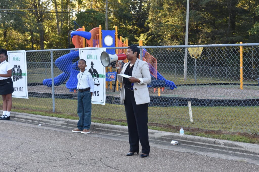 VICKSBURG, Miss. (VDN) — Visitors to Vicksburg Intermediate School will notice new signage as they enter the school parking lot following an unveiling event honoring students who scored a perfect score on state tests last year.