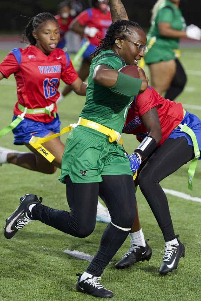 Both teams generated big plays in the first half. Jada Erwin hauled in a tipped pass, while Aaliyah Mims later connected with Erwin on a 30-yard completion.