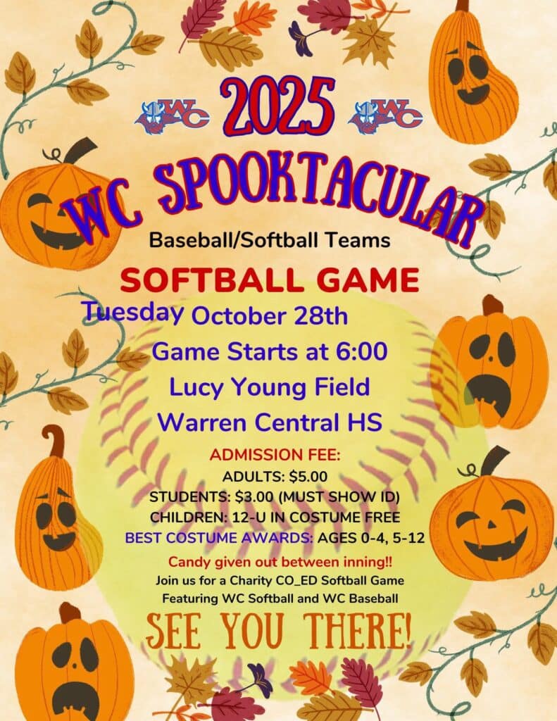 VICKSBURG, Miss. (VDN) — Warren Central High School will host its annual “WC Spooktacular” softball game on Tuesday, Oct. 28, at Lucy Young Field. The event, featuring both the baseball and softball teams, will begin at 6 p.m.